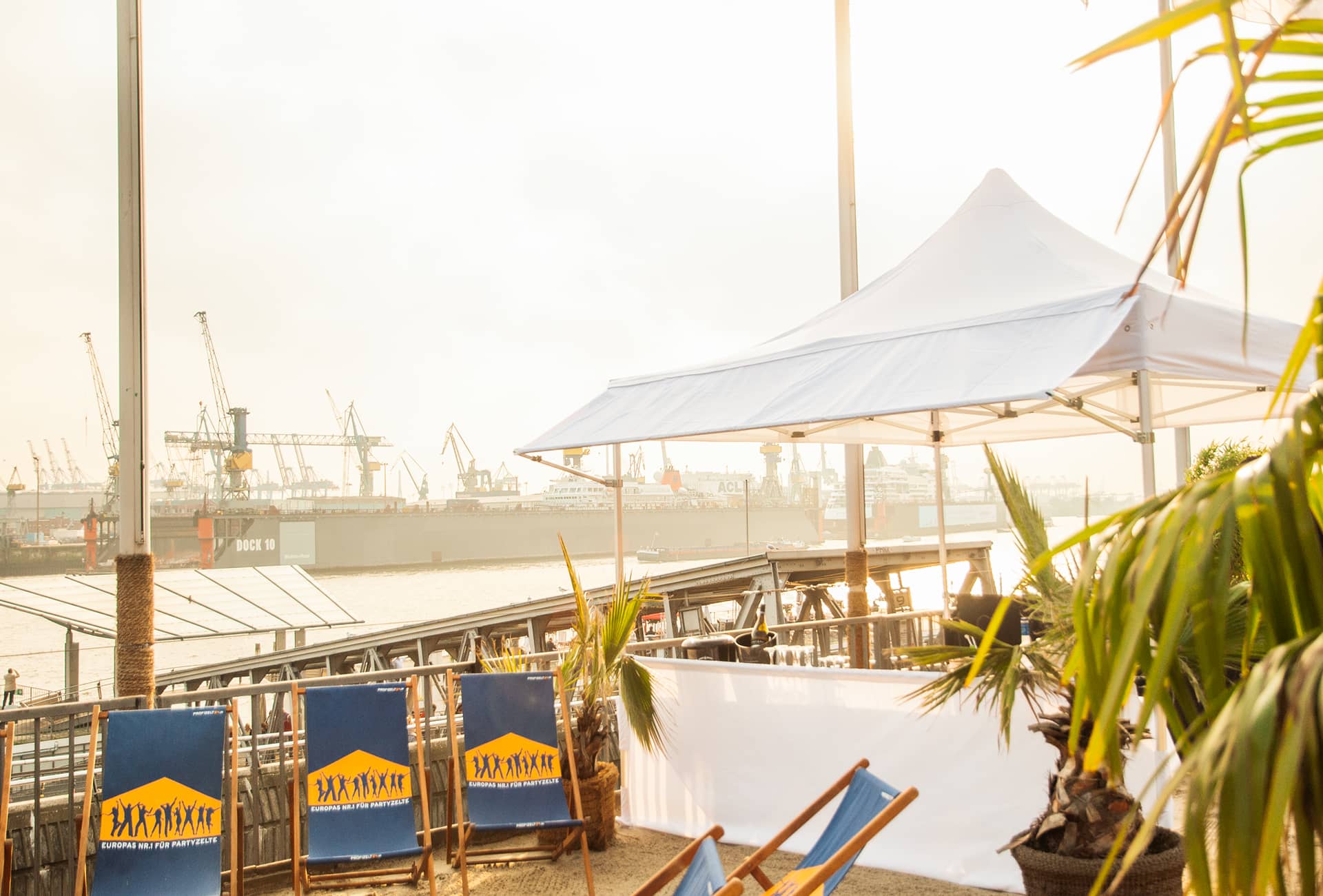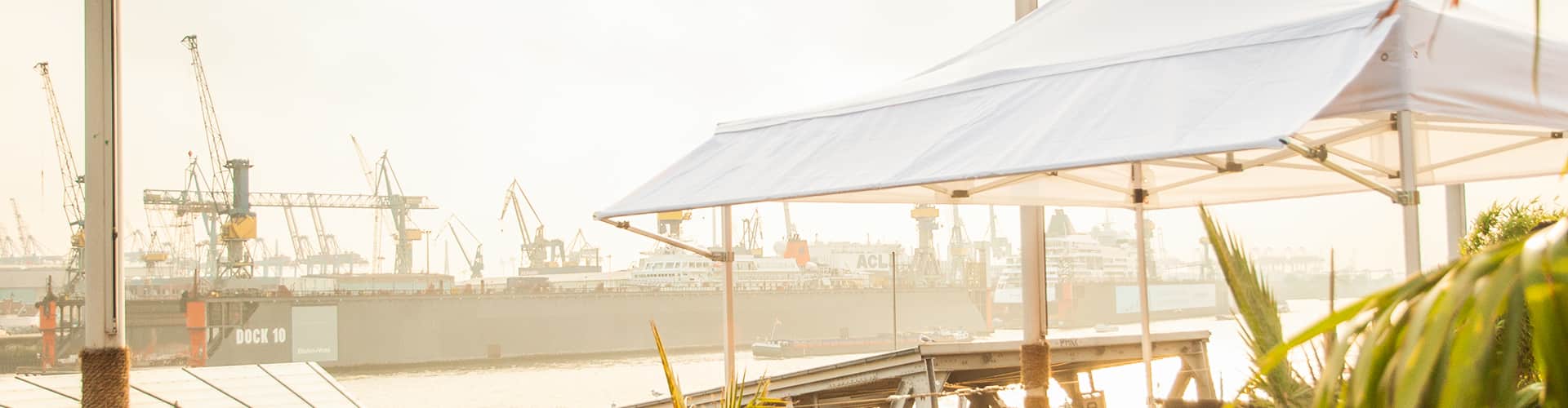 Alle unsere Event-Pavillons sind stabil, wasserdicht und haben einen hohen UV-Schutz. Überzeugen Sie sich selbst – nehmen Sie die S-Bahn bis zu den St. Pauli Landungsbrücken und machen Sie sich direkt vor Ort im Beach Club einen eigenen Eindruck von unseren Event Pavillons.