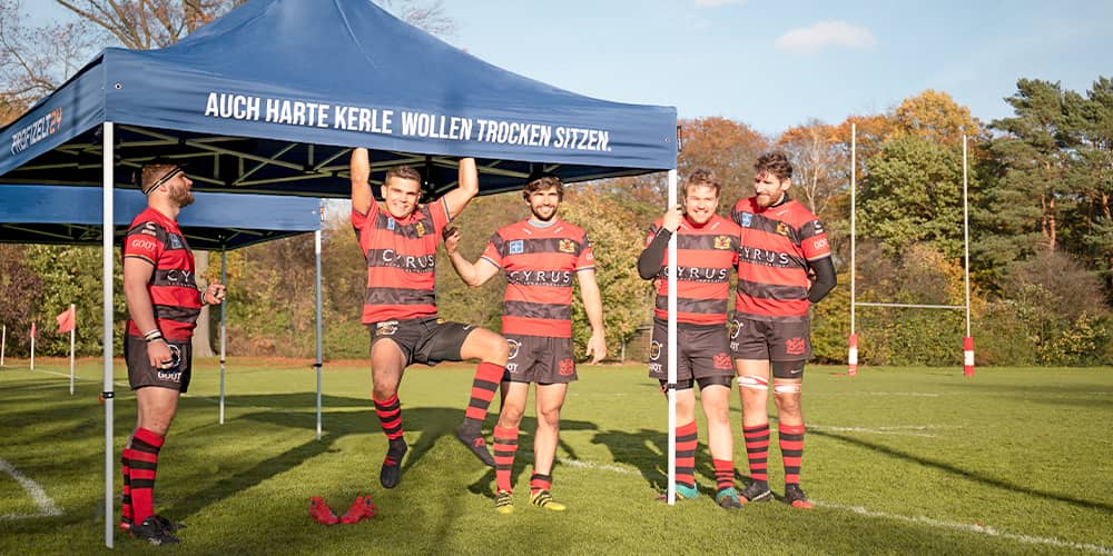 Für den Auftakt der Bundesliga-Saison 2016/2017 empfing der Hamburger Rugby Club den Rugby Club Leipzig im Hamburger Stadtpark. Wir waren bei dem Outdoor-Event der ersten Bundesliga Nord mit dabei – und das mit unseren Faltpavillons in der Größe 3×3 m im Gepäck.
