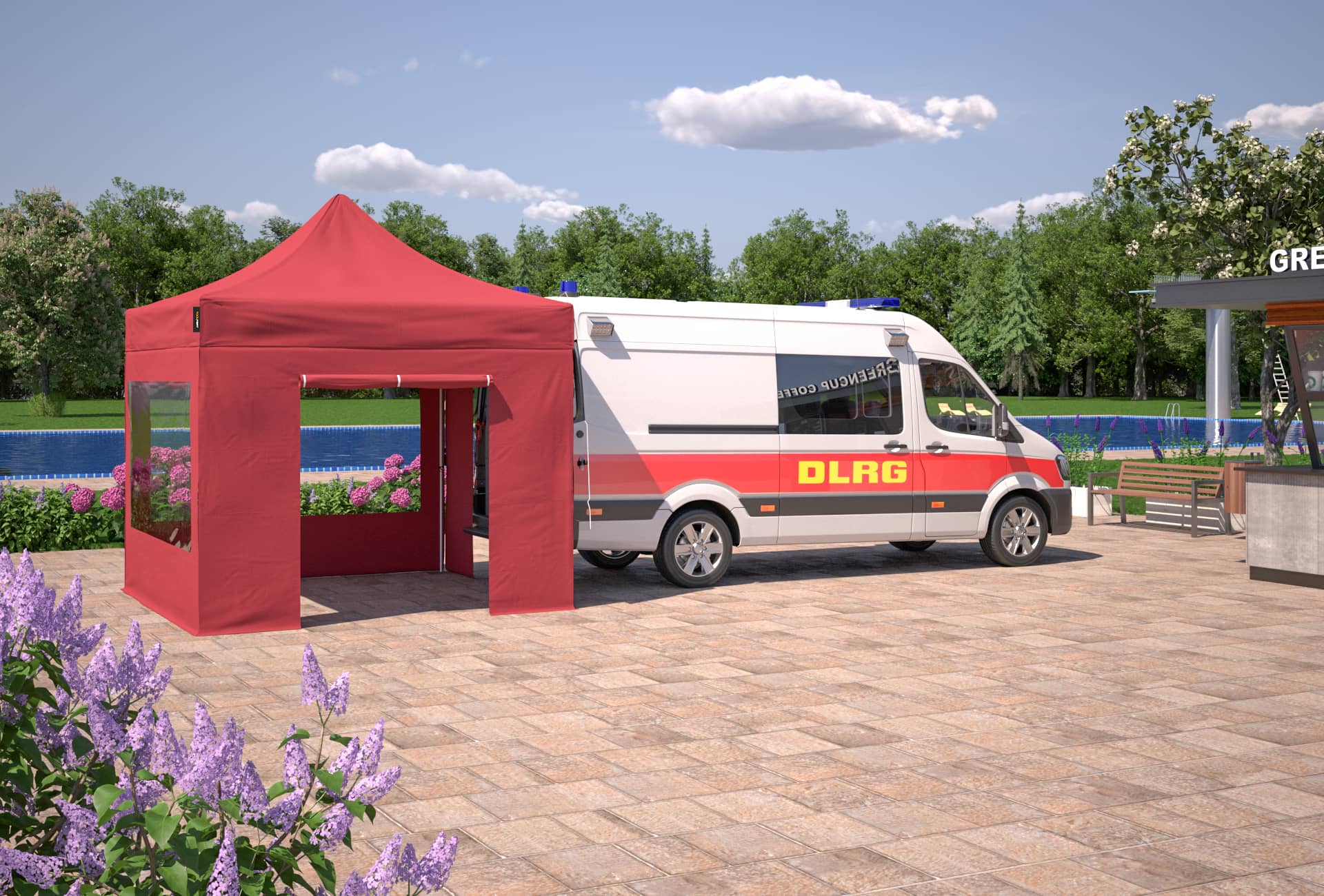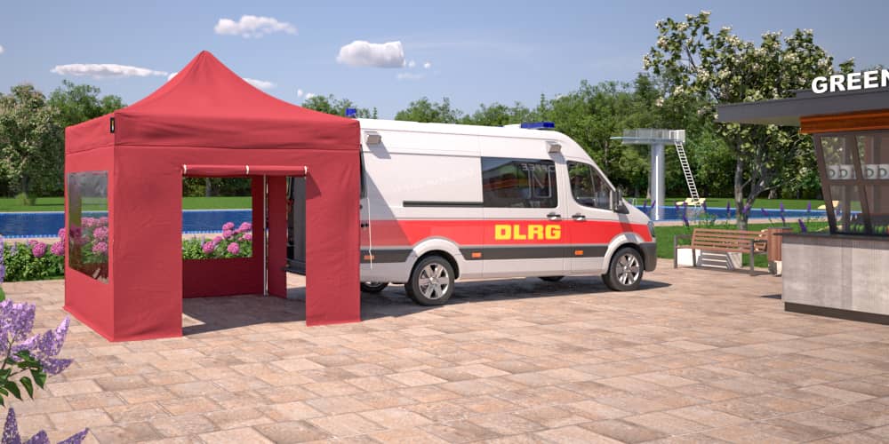 Wasserdichte Faltpavillons sind richtige Allrounder und eignen sich perfekt für die Nutzung im Rettungs- und Notdienst. Gerade, weil der Aufbau binnen wenigen Minuten finalisiert ist und dank des geringen Transportgewichts sind faltbare Pavillons die ideale Lösung für den Soforteinsatz.
