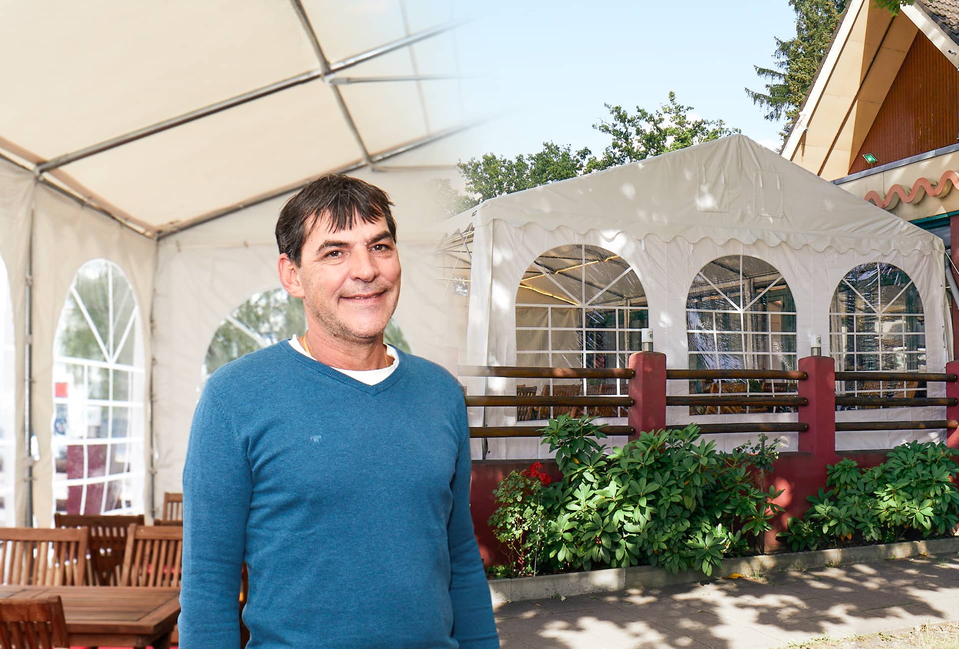 Wie lange steht das Partyzelt schon hier? Und wie haben Sie vor Corona Ihre Außengastronomie vor Wind und Wetter geschützt?
