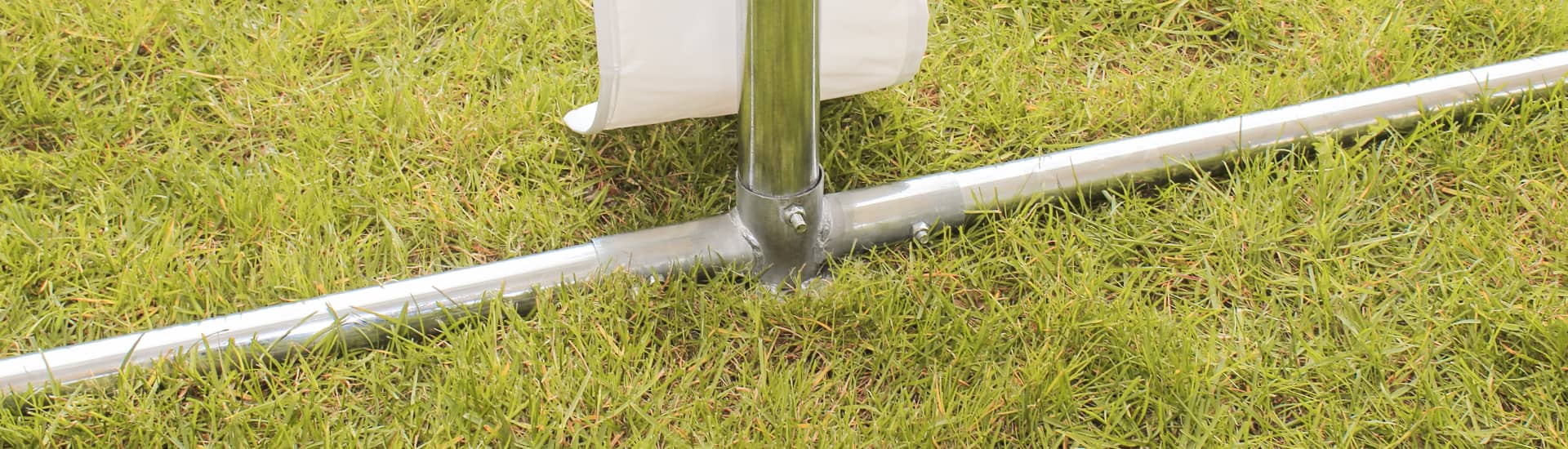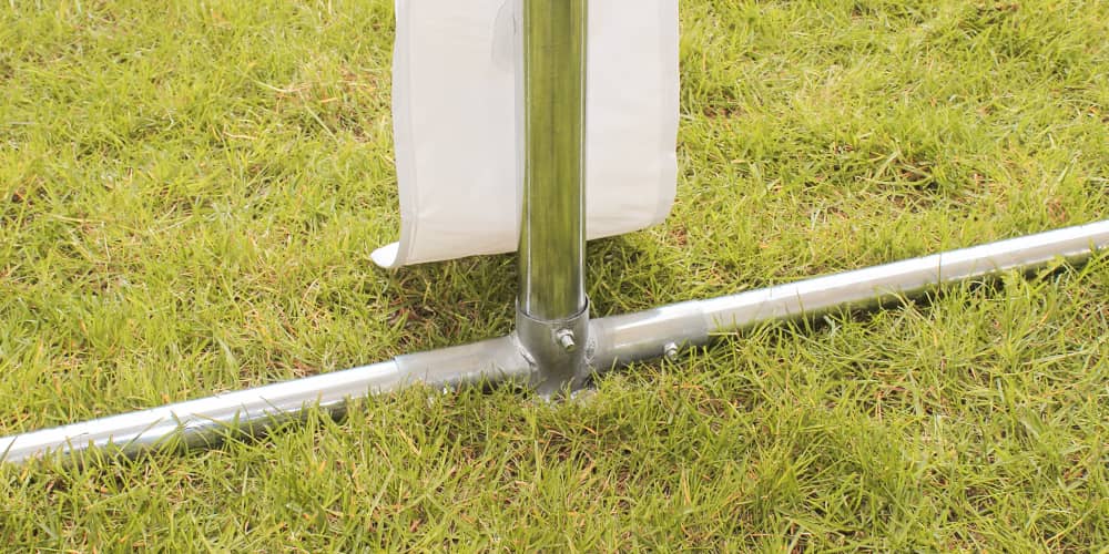 Er trägt außerdem dazu bei, dass die Standbeine gerade im 90 Grad Winkel zum Boden stehen. Das optimiert die Standsicherheit und verringert die Knickgefahr von Standbeinen. Partyzelte mit Bodenrahmen haben zudem ein höheres Standgewicht und dadurch mehr Standfestigkeit bei zunehmenden Windstärken.
