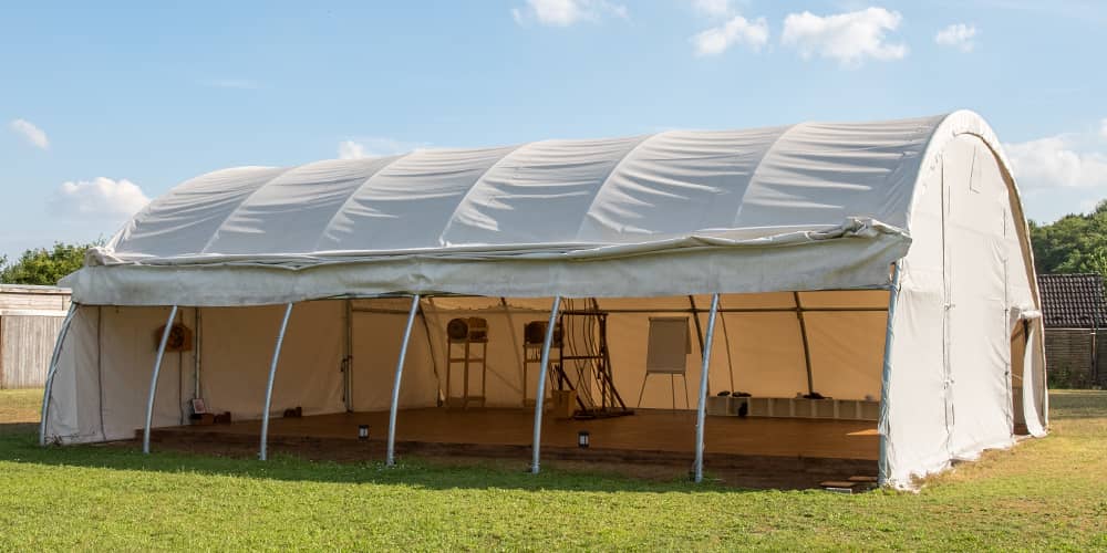 Bauen Sie Ihre Rundbogenhalle bzw Ihr Zelt auf und achten Sie auf die rechten Winkel in den Zeltecken.