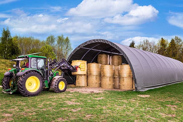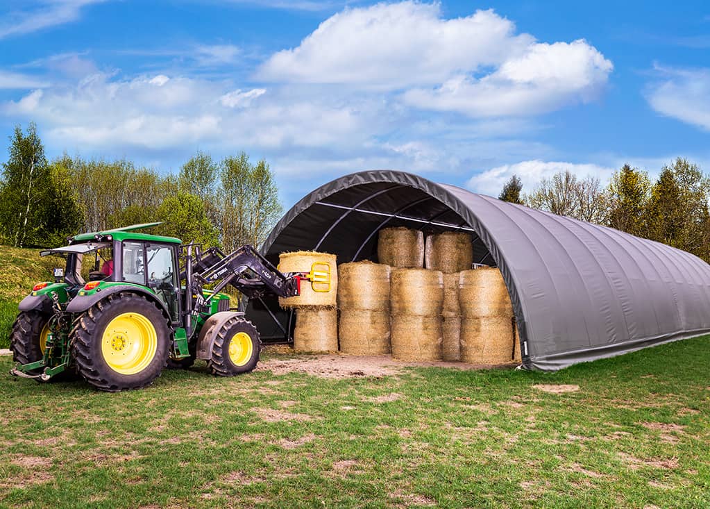 Aber nicht nur als Lagerzelt für Heu und Futter sind Weidezelte in der Landwirtschaft beliebt, sondern auch als Überdachung für größere Maschinen und landwirtschaftlichen Fahrzeugen.